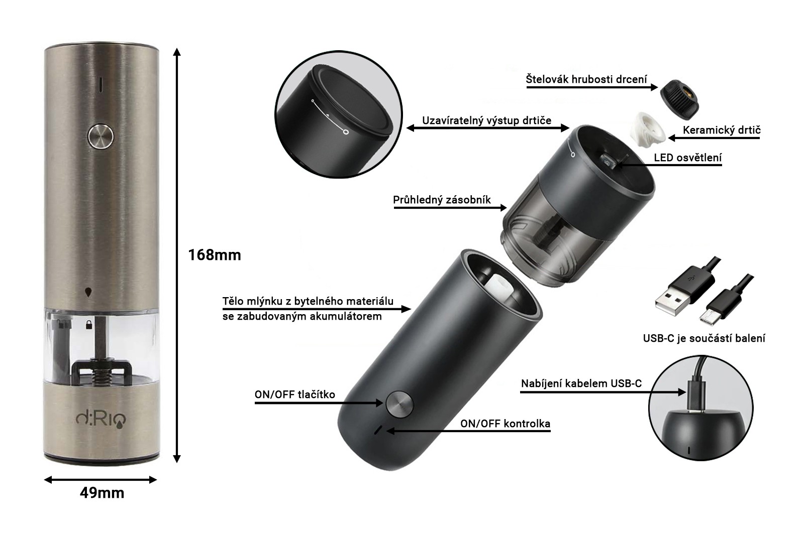 d:Rio AKU Elektrický mlynček na soľ a čierne korenie - nerez
