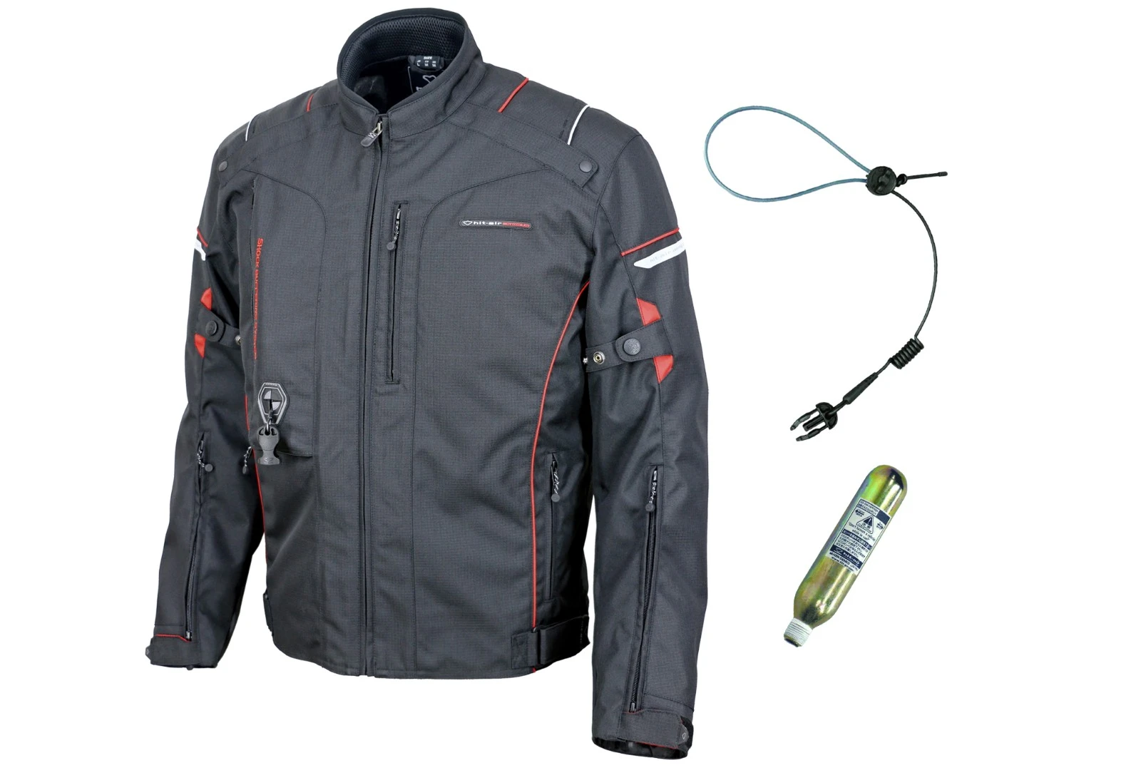 Hmotnosť bundy je 2.200g, CO2 cartridge 50cc.