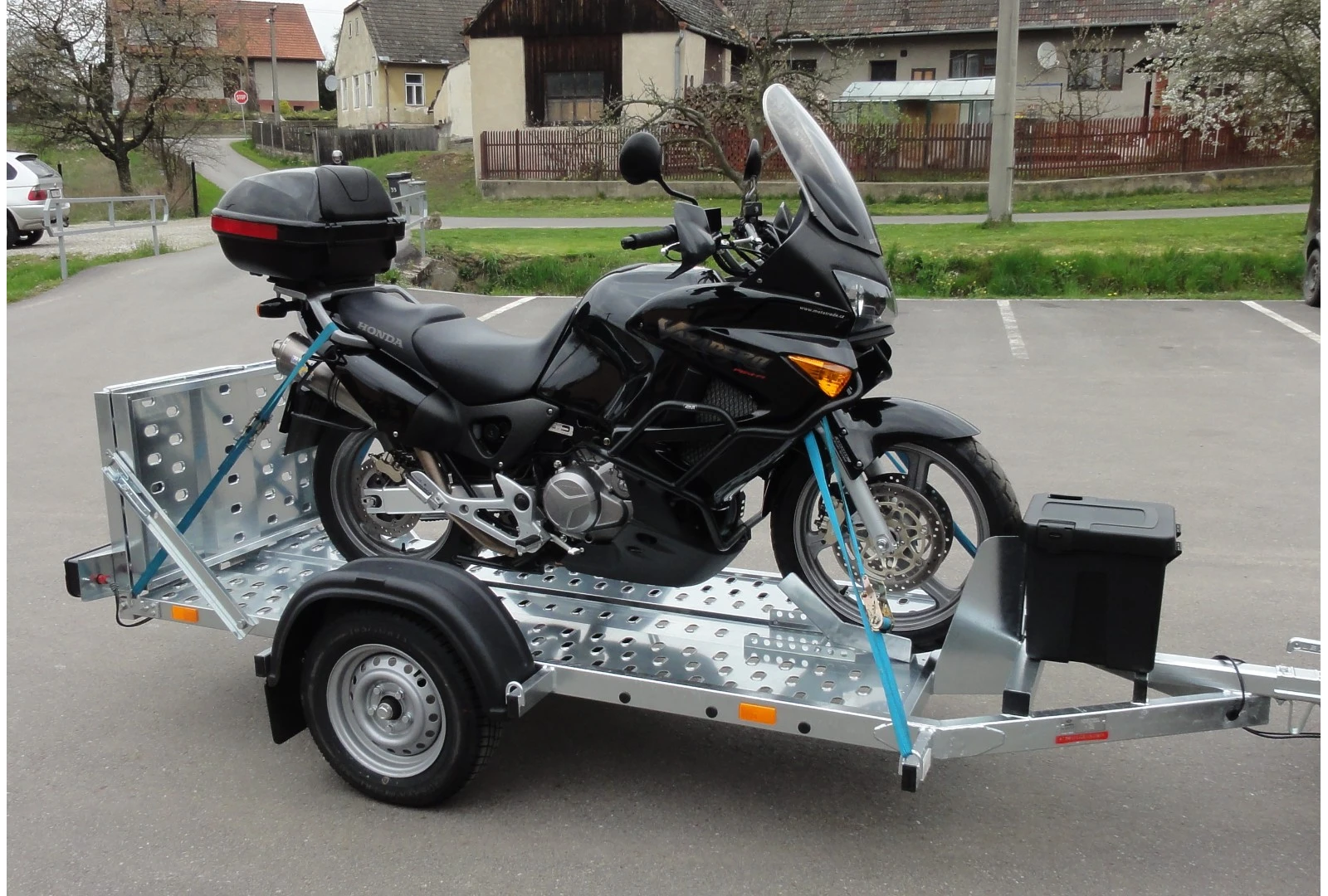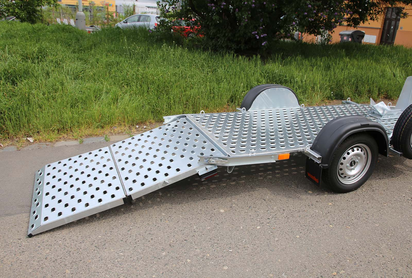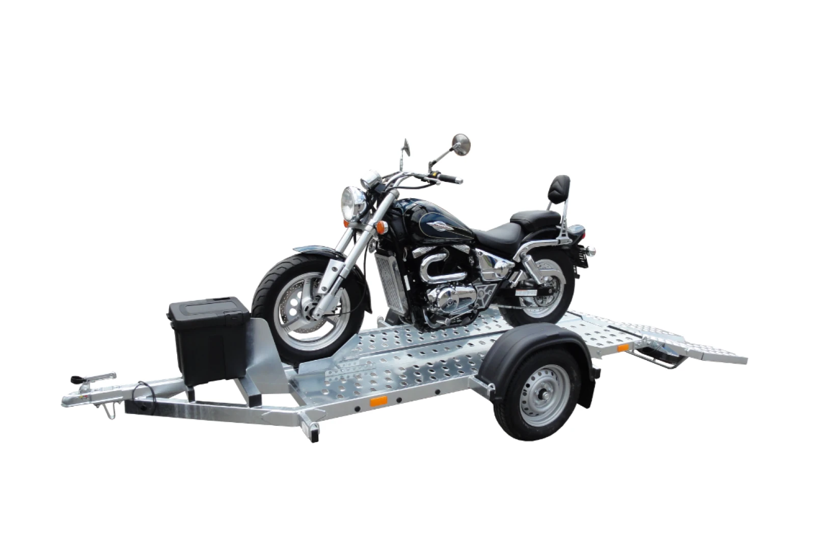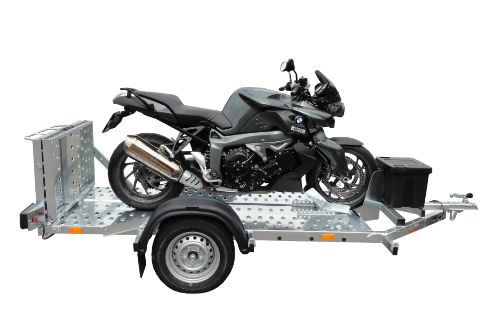 Súčasti vozíka je rezerva – náhradné koleso, nájazdová rampa, prepravná taška (kurtny – popruhy na uchytenie 1ks motocykla, náradie na výmenu kolesa, redukcia – zásuvka)
