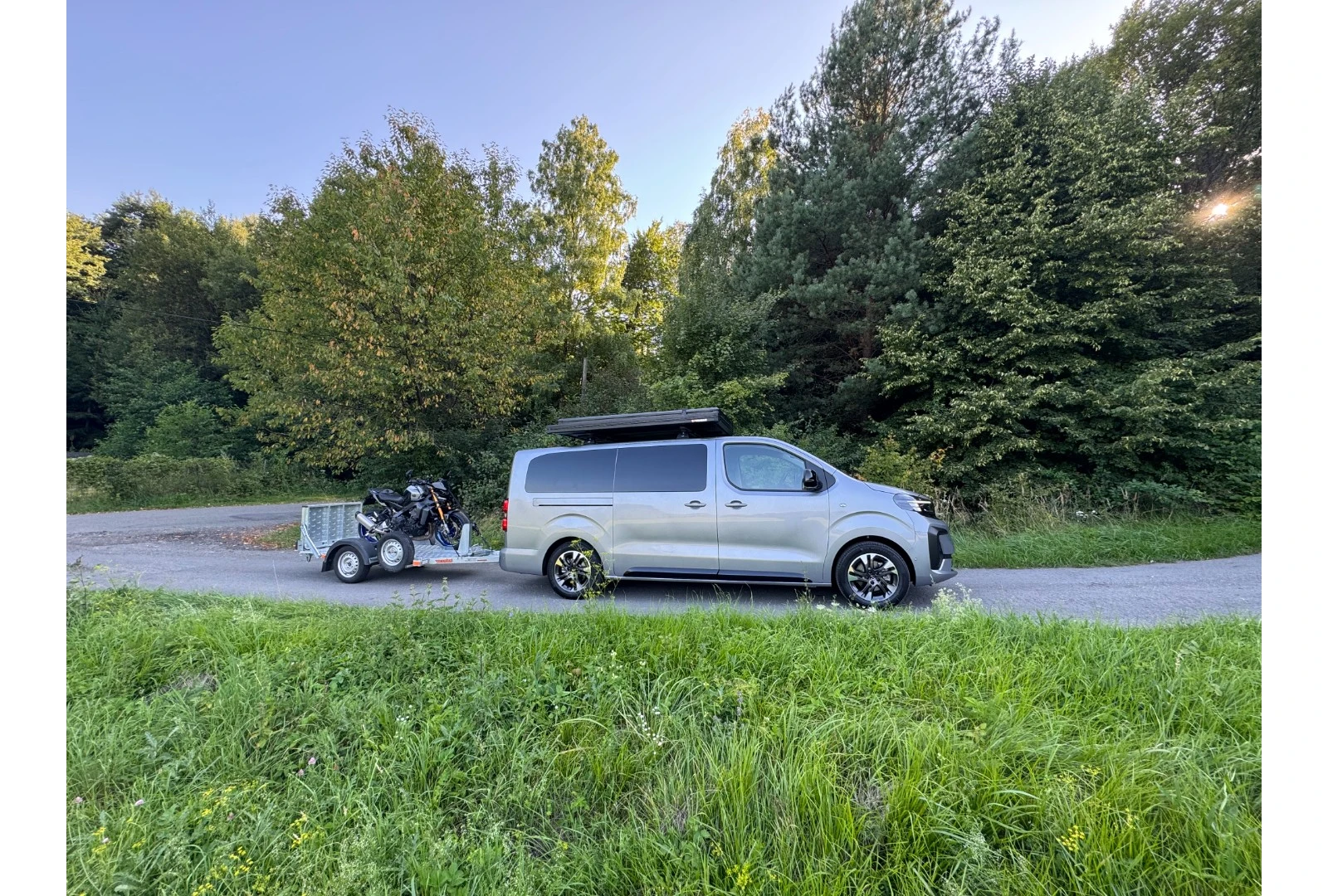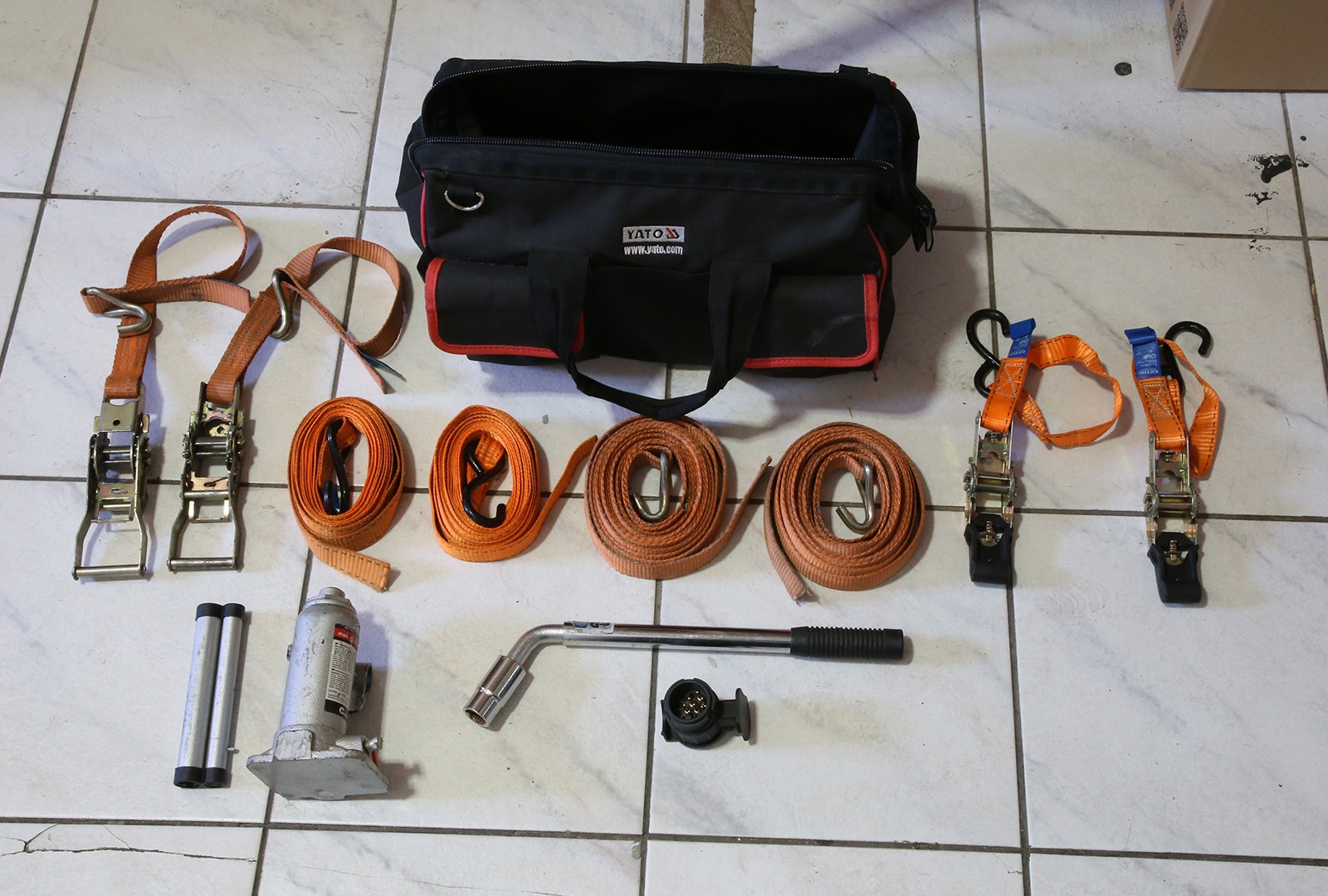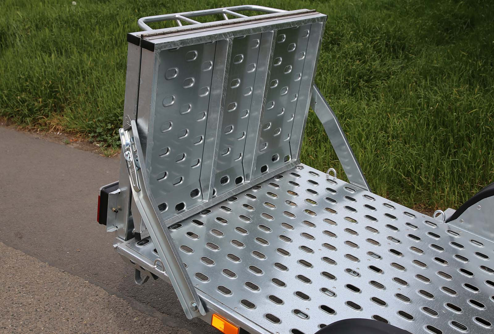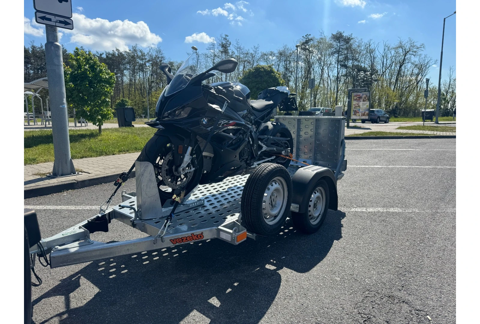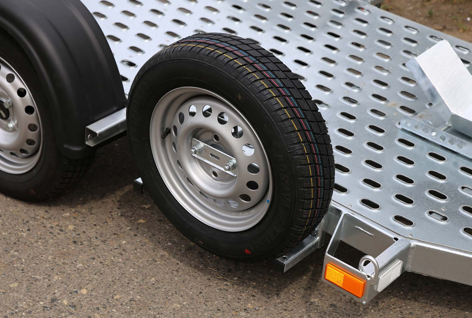 Súčasti vozíka je rezerva – náhradné koleso, nájazdová rampa, prepravná taška (kurtny – popruhy na uchytenie 1ks motocykla, náradie na výmenu kolesa, redukcia – zásuvka)