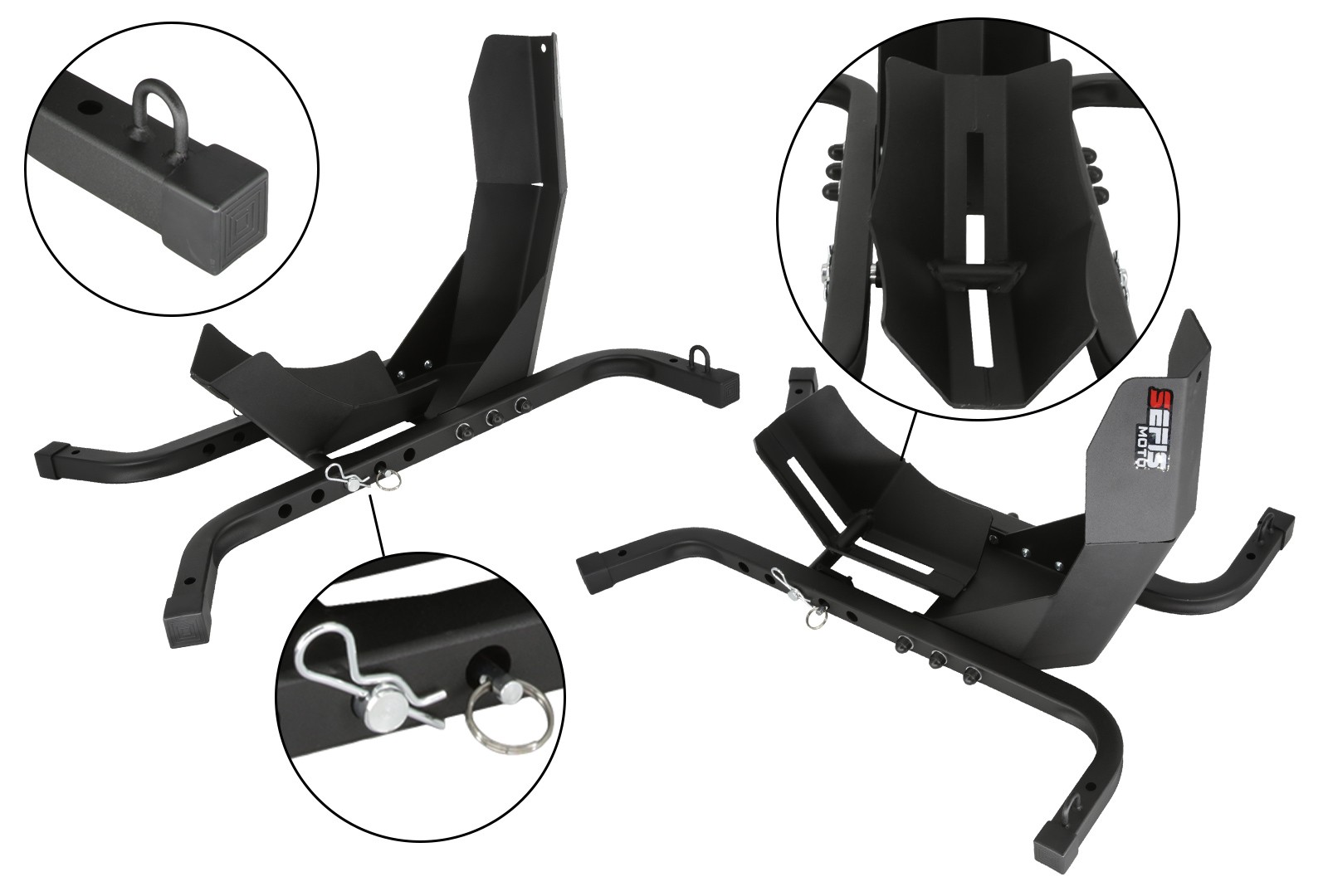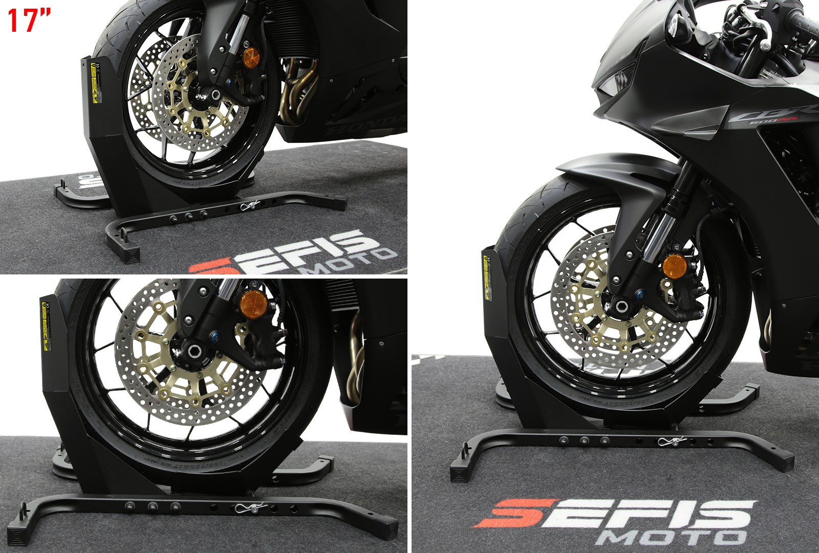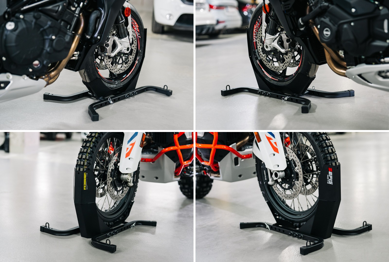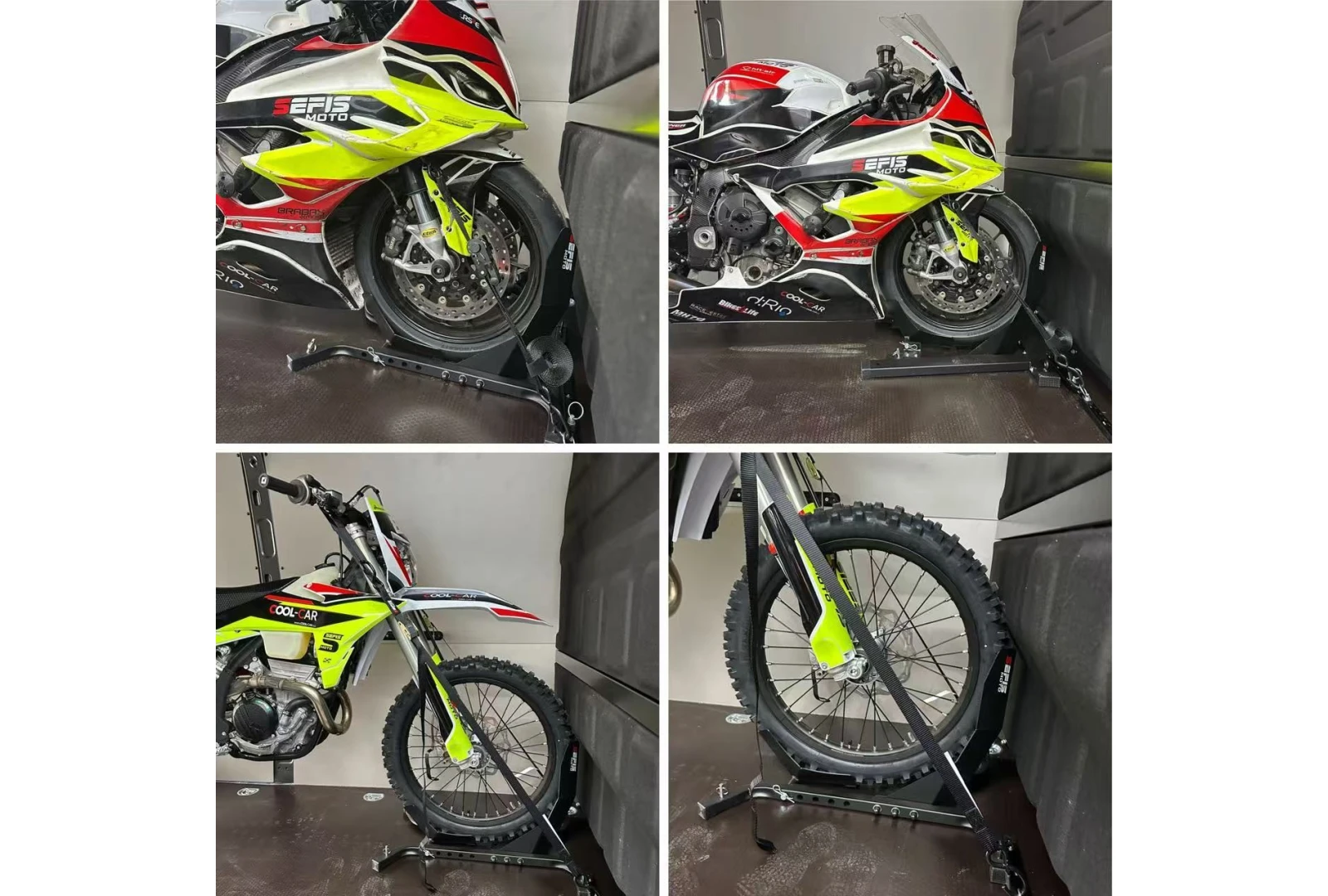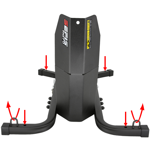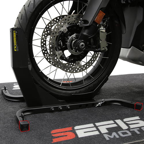 Na zakotvenie stojana do podlahy dodávky, prívesu alebo garáže slúžia štyri otvory o veľkosti 10 milimetrov. Zakotvenie stojana nielen zaručí dokonalú stabilitu a bezpečie vášho motocykla počas prepravy, ale tiež vám umožní využiť dvojicu ôk s vnútorným priemerom 20 milimetrov slúžiacu na pretiahnutie prepravných popruhov a fixáciu motocykla priamo k stojanu. Pre ich využitie je ale nutné pevné zakotvenie stojana, pri nezakotvenom stojane vždy fixujte motocykel k bodom k tomu určeným vo vnútri vozidla.