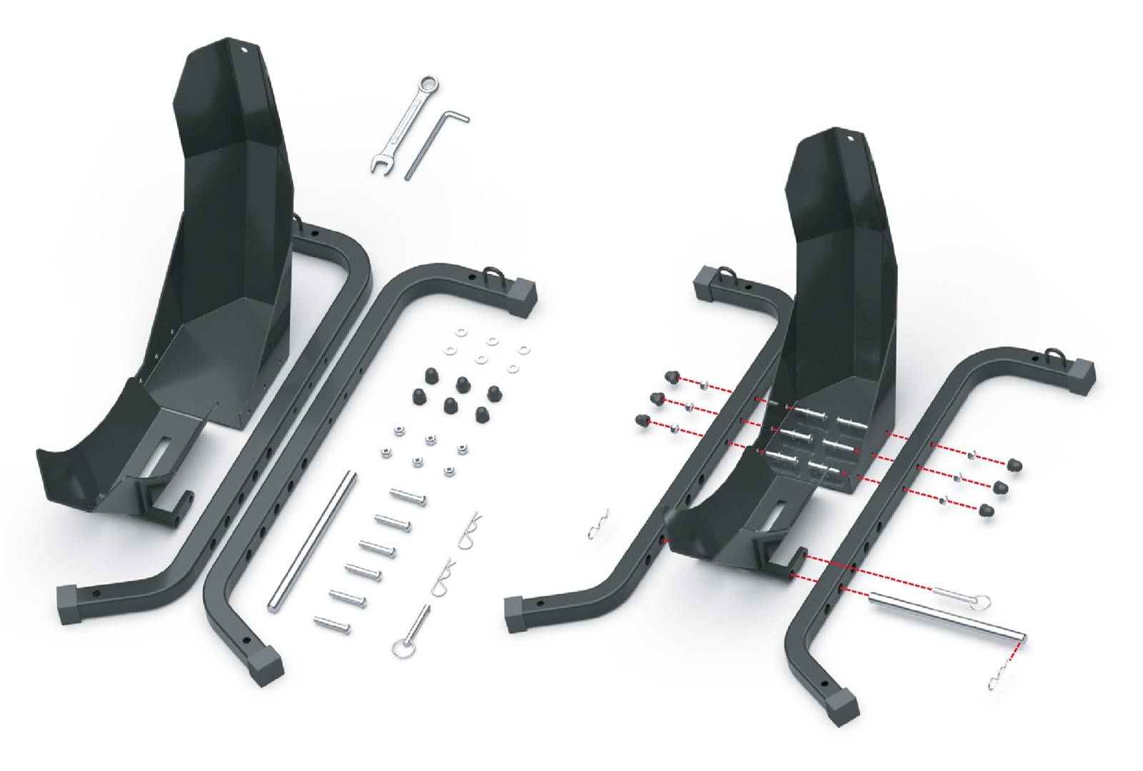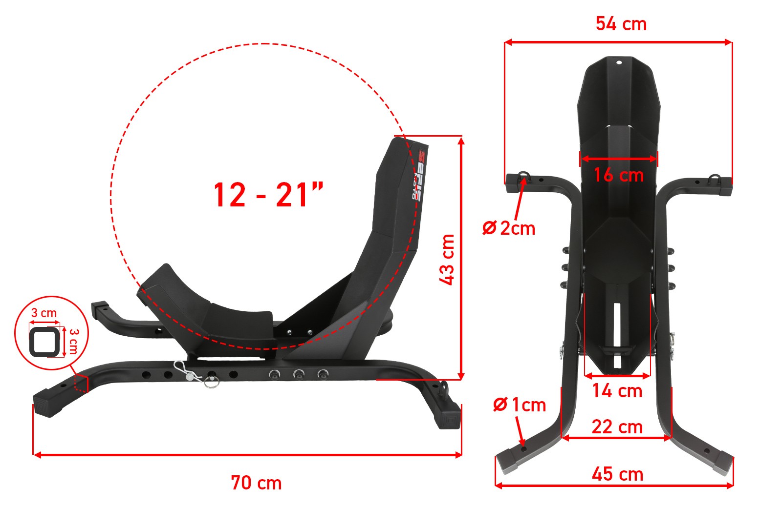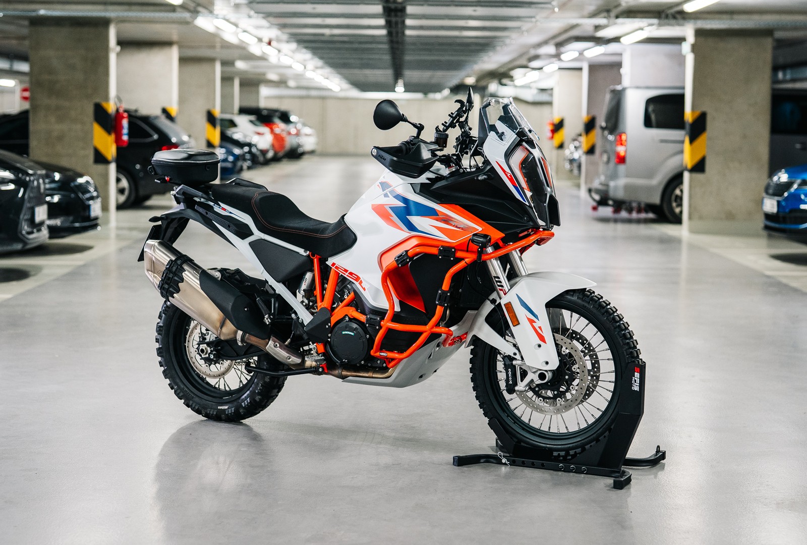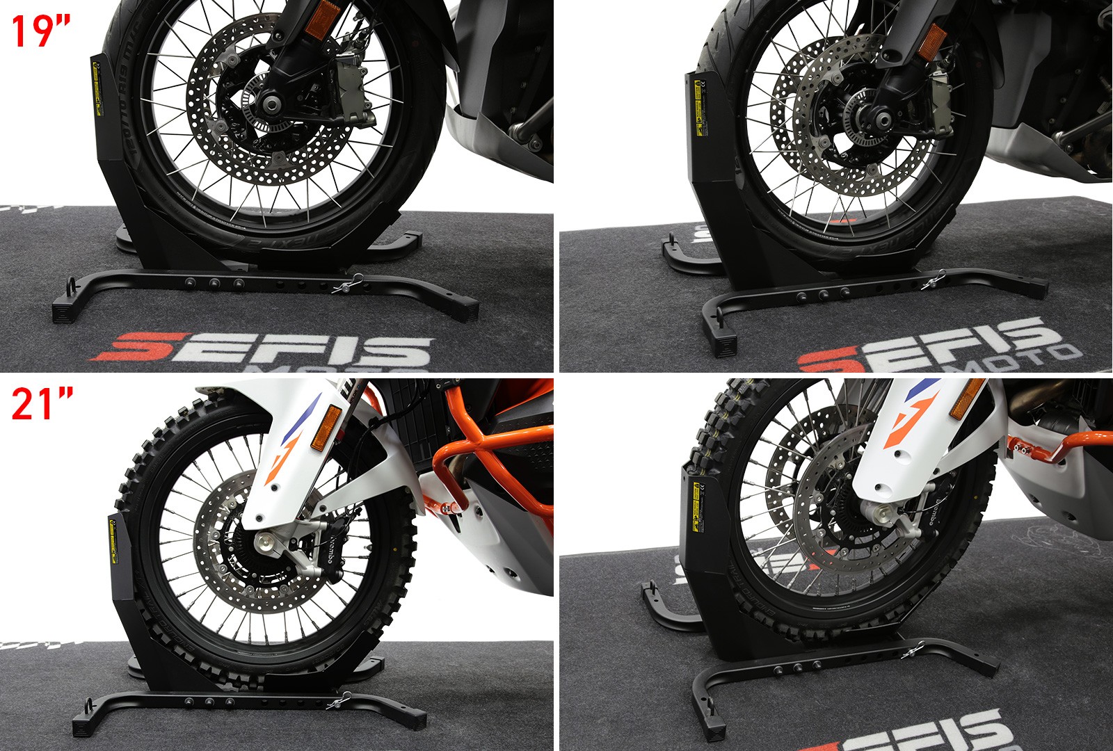 Na zakotvenie stojana do podlahy dodávky, prívesu alebo garáže slúžia štyri otvory o veľkosti 10 milimetrov. Zakotvenie stojana nielen zaručí dokonalú stabilitu a bezpečie vášho motocykla počas prepravy, ale tiež vám umožní využiť dvojicu ôk s vnútorným priemerom 20 milimetrov slúžiacu na pretiahnutie prepravných popruhov a fixáciu motocykla priamo k stojanu. Pre ich využitie je ale nutné pevné zakotvenie stojana, pri nezakotvenom stojane vždy fixujte motocykel k bodom k tomu určeným vo vnútri vozidla.