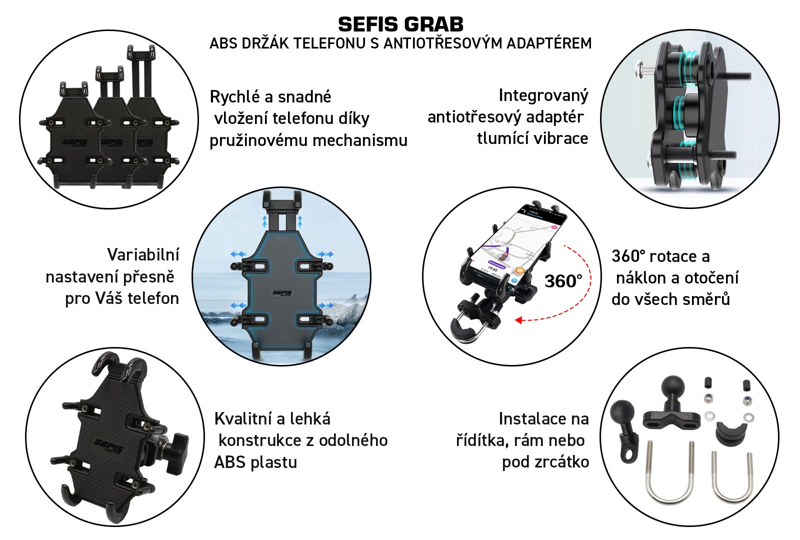 Hodil by sa vám nejaký atypický spôsob inštalácie alebo už máte na riadidlách niektorý z našich starších držiakov? Držiak Grab síce v balení má všetko čo potrebujete, ale zároveň je plne kompatibilný s SEFIS Ball systémom a jeho obrovským výberom ďalších nástavcov.