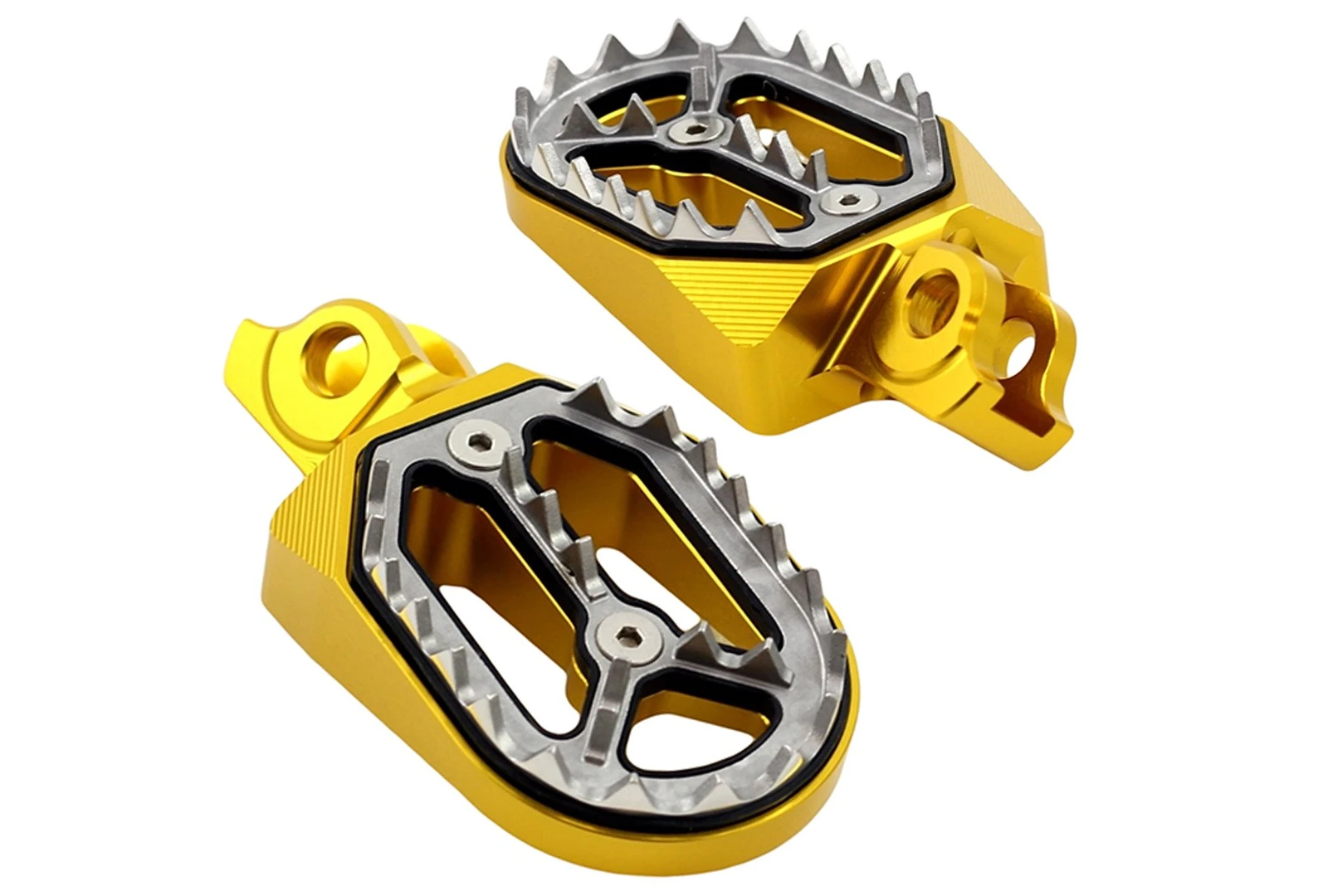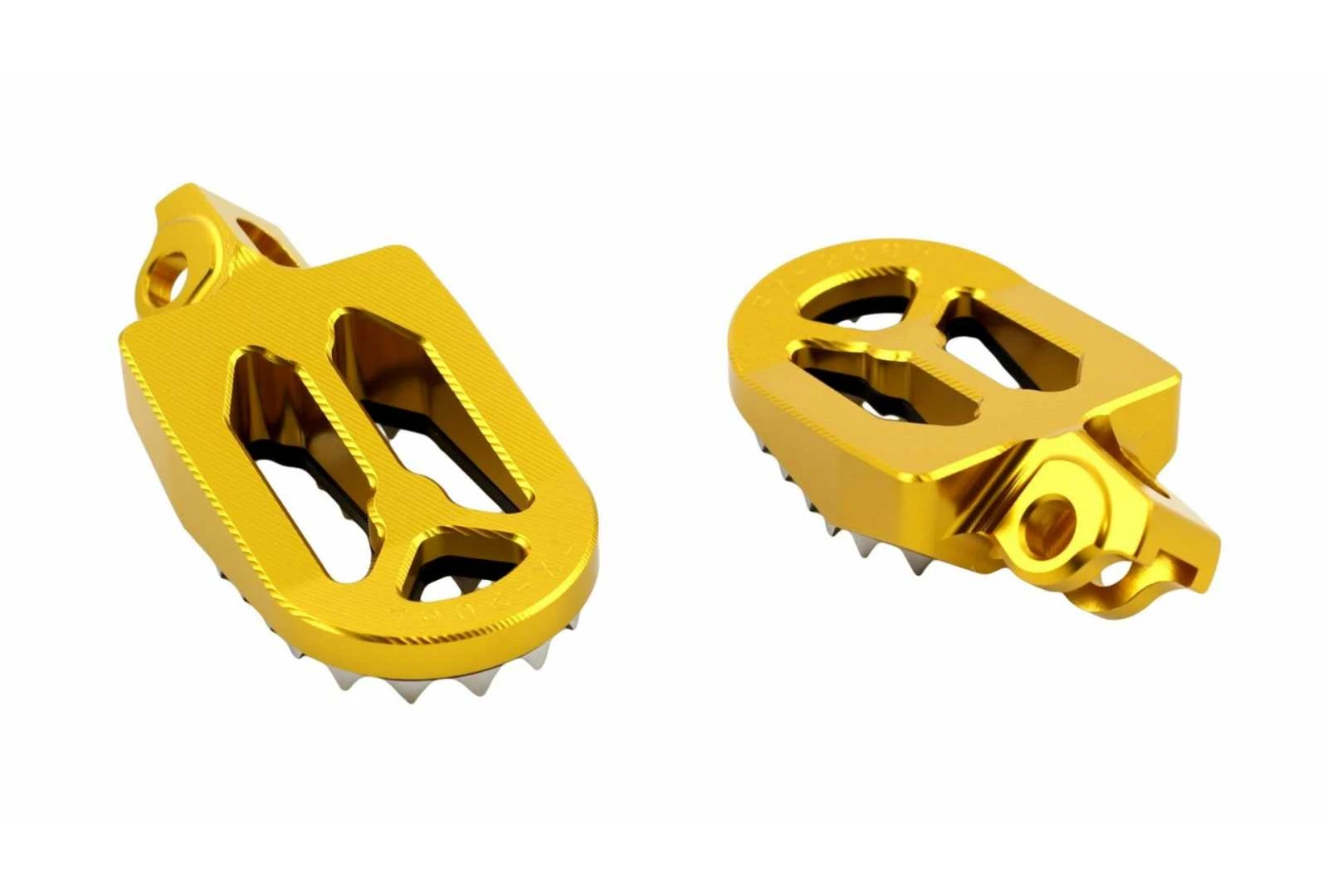 Získajte maximálnu priľnavosť a dokonalú kontrolu medzi motorom a motorom s týmito motokrovi. Ostré stupačky sú dodávané s veľmi širokou výmennou doskou z nerezovej ocele, ktorá poskytuje vodičom vynikajúcu úchopovú a protiskluzovú kontrolu na motocykli.