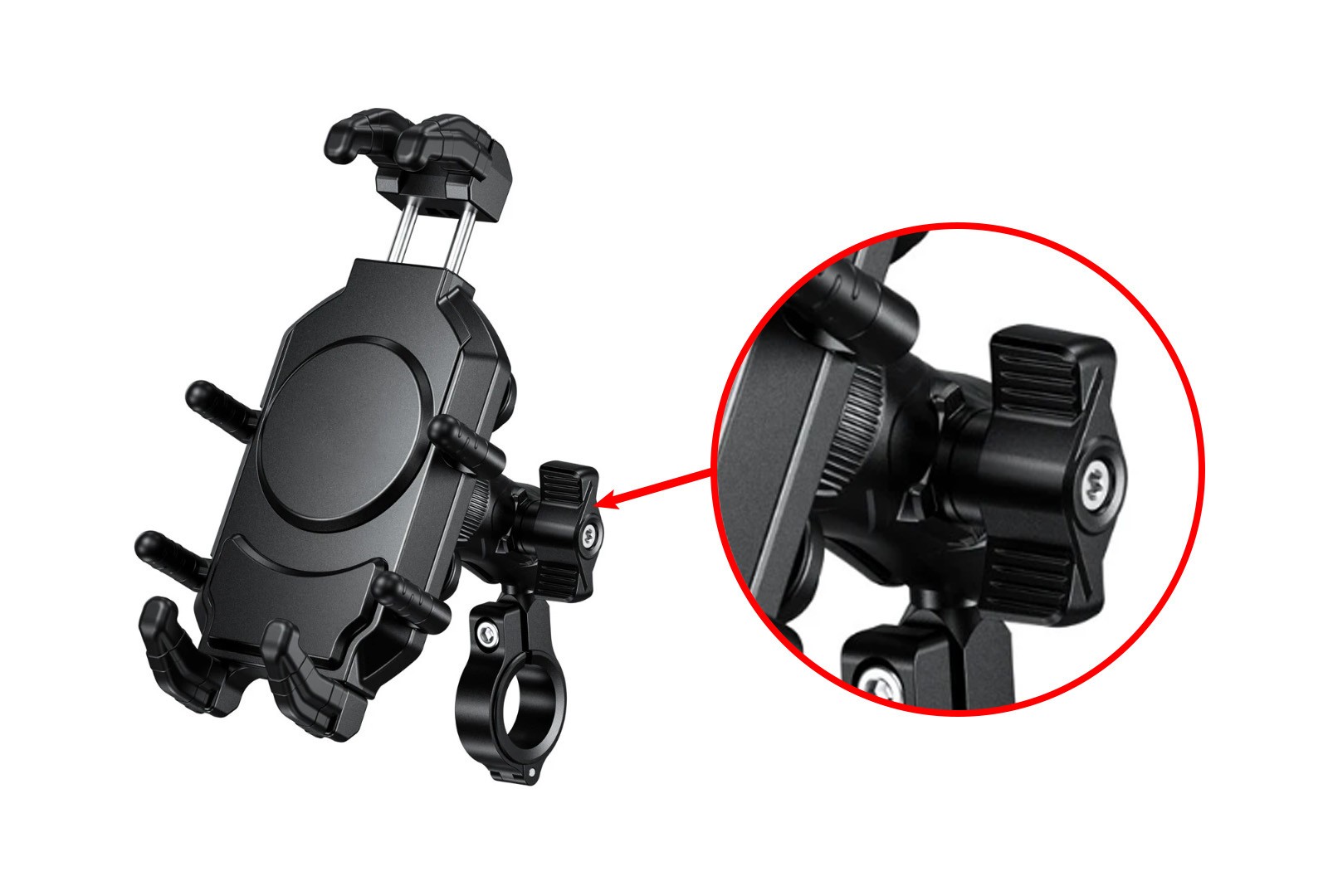 <span style="font-size:16px;"><strong></strong></span><span style="font-size:16px;">Variabilná montážka vám umožní nastaviť si polohu držiaka telefónu presne tak, ako potrebujete, držiak ide <strong>natočiť a sklopiť</strong> do všetkých smerov a samozrejmosťou je aj<strong> 360 ° rotácie</strong>. Pre zmenu nastavenia navyše stačí iba povoliť ručnú skrutku na tele nohy montážky, to je veľmi jednoduché aj v rukaviciach a tak nie je problém rýchlo montážku povoliť a držiak otočiť pokiaľ napríklad preferujete horizontálne zobrazovanie navigácie.</span><span style="font-size:16px;"></span></p>
