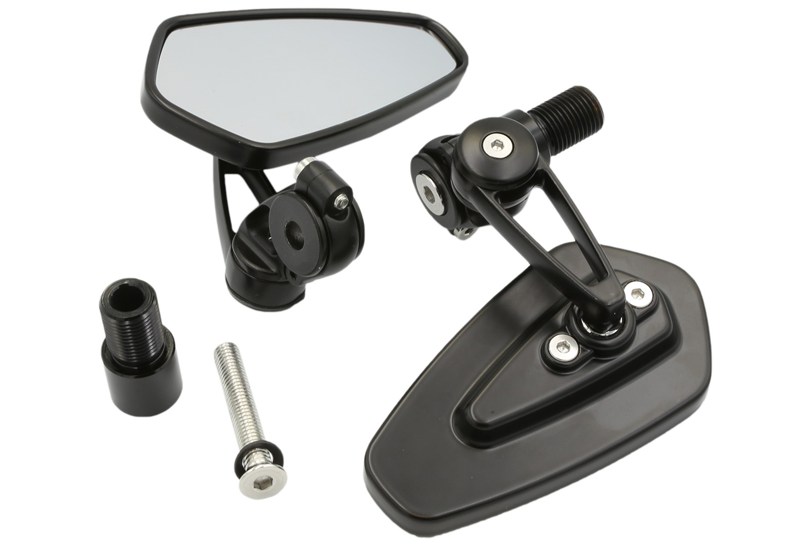Zrcátka Flip dodávame s montážou pre inštaláciu do koncov riadidiel v štýle cafe racer. Takto umiestnené zrkadlá sú čoraz populárnejšie, či už vďaka lepšiemu výhľadu dozadu alebo atraktívnejšiemu vzhľadu riadidiel. Na inštaláciu do riadidiel poslúži univerzálna montáž pre riadidlá s vnútorným priemerom 13-17 milimetrov a hodí sa napríklad pre riadidlá Honda, Suzuki a mnoho ďalších. V našej ponuke nájdete aj ďalšie varianty produktu s montážami pre originálne riadidlá Yamaha a Kawasaki s vnútorným závitom.