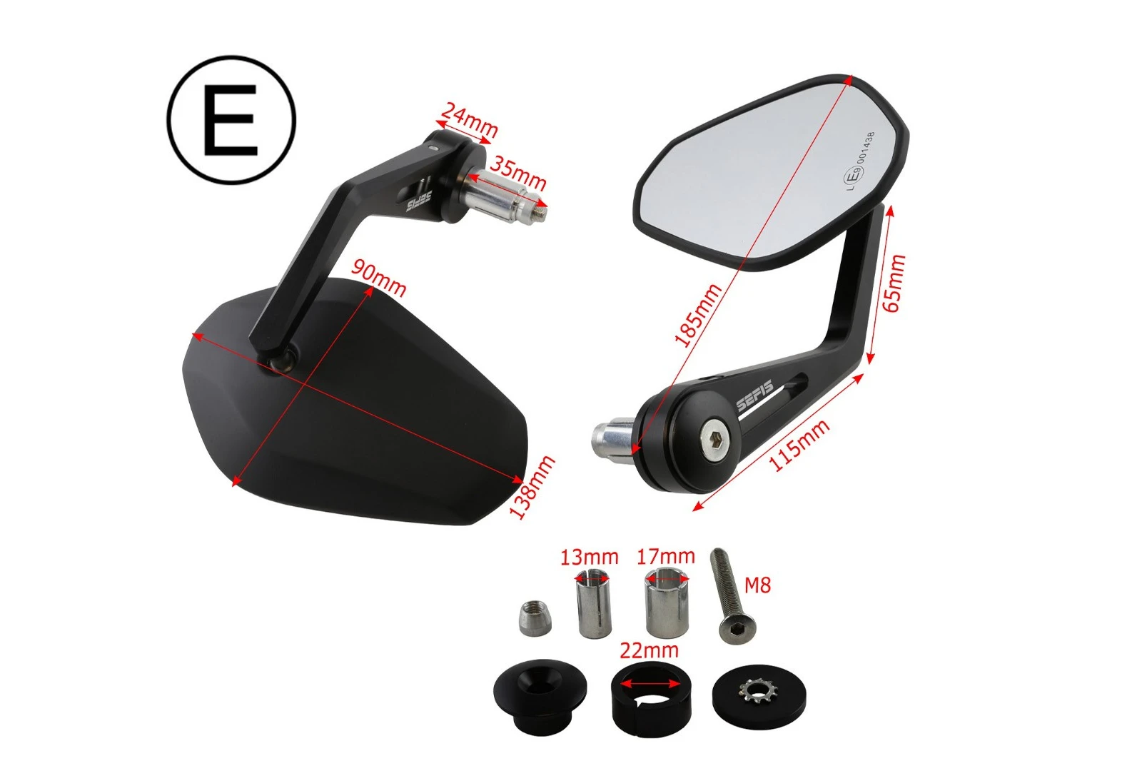 Zrkadlá Grave dodávame s montážkou na inštaláciu do koncov riadidiel vo štýle Cafe Racer. Takto umiestnené zrkadlá sú stále obľúbenejšie, či už kvôli lepšiemu výhľadu za seba alebo atraktívnejšiemu vzhľadu riadidiel. Na inštaláciu do riadítok poslúži univerzálna montážka na riadítka s vnútorným priemerom 13-17 milimetrov a hodí sa napríklad na riadidlá Honda, Suzuki a mnoho ďalších. V našej ponuke potom nájdete aj ďalšie varianty produktu s montážkami pre originálne riadidlá Yamaha a Kawasaki s vnútorným závitom.