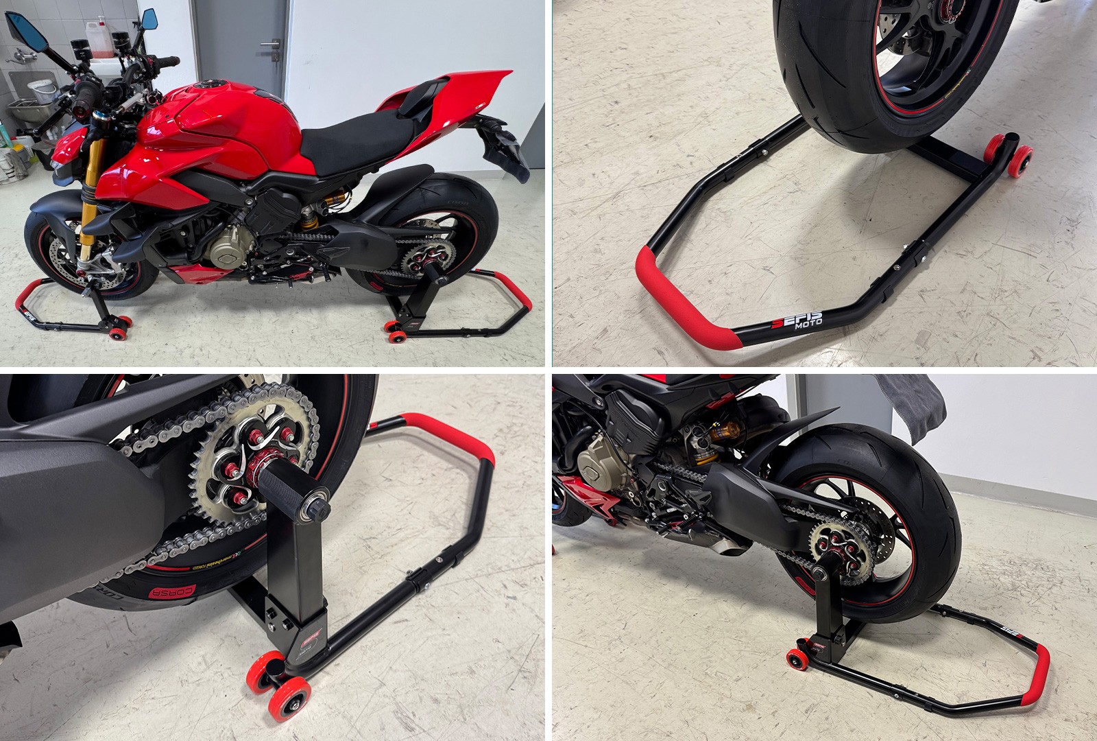 Motocykle s letmým uložením kolesa vyžadujú na zdvihnutie a servisovanie ten správny stojan. So sklopným stojanom SEFIS M22 to nebude problém. Ľahko sa s ním manipuluje a zdvihnutie motocykla tak zvládne každý aj bez pomoci. Ľavostranný letmý stojan sa hodí pre motocykle značiek Honda, Ducati, Triumph, MV Agusta, KTM a BMW.