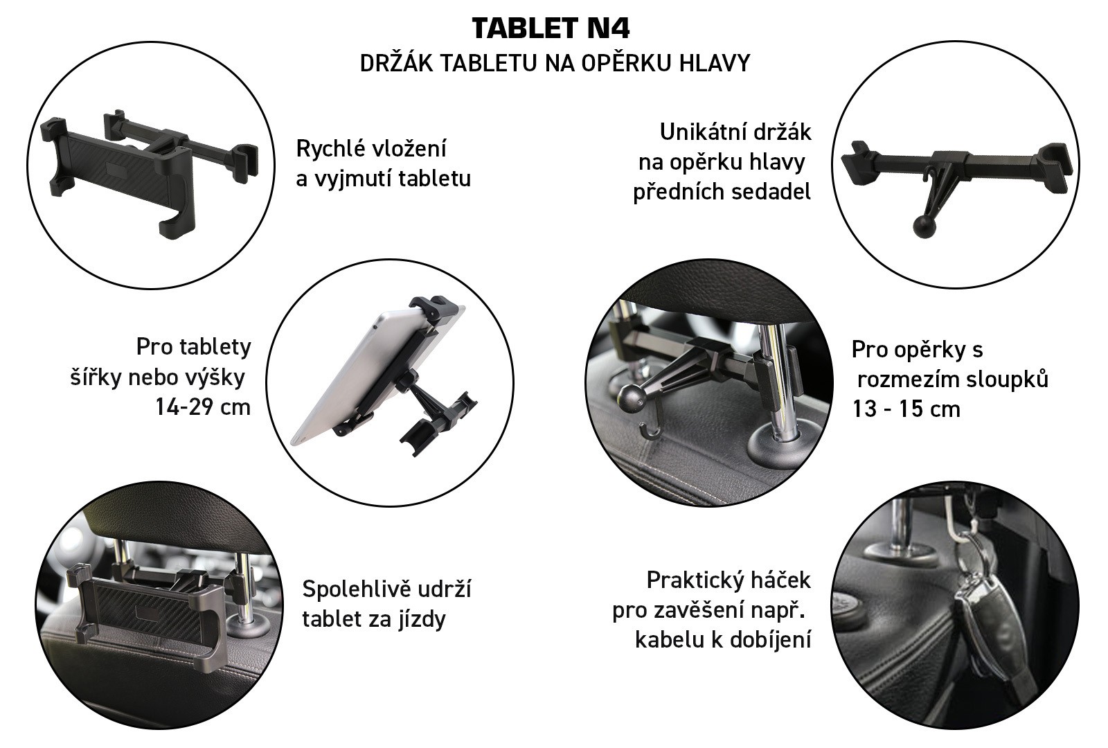 SEFIS Tablet držiak tabletu na opierku hlavy N4