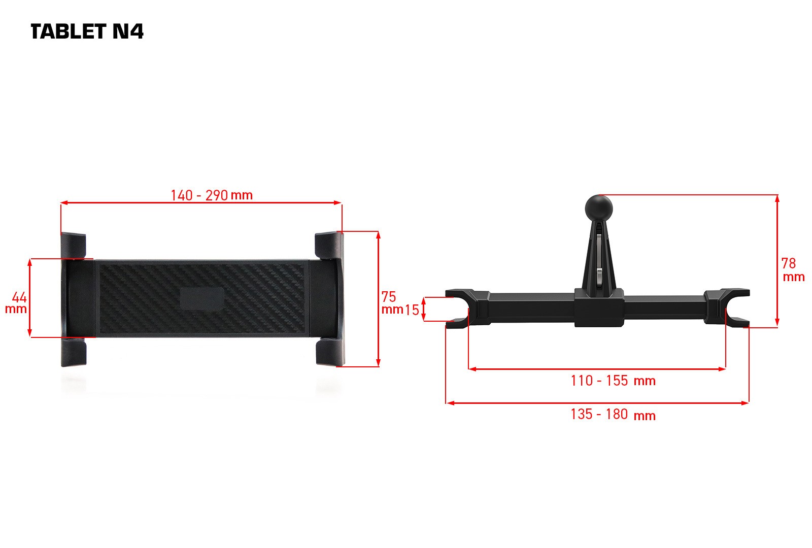 Nohu N4 ľahko upevníte na väčšinu bežných opierok hlavy na predných sedadlách automobilu. Šírka držiaka funguje na pružine a preto stačí držiak stlačiť a umiestniť medzi stĺpikmi opierky hlavy kde po uvoľnení zostane bezpečne zafixovaný. Držiak je kompatibilný s opierkami s rozmedzím stĺpikov 13-15cm.